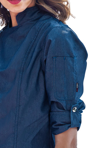 La tela de mezclilla da un look muy moderno y su color es duradero; además como plus es anti pelusa. También dicha prenda cuenta con cierre y costuras dobles.
