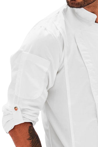 Esta filipina será una de tus mejores compras. Dicha prenda está fabricada para ser ligera y muy cómoda; además de que la tela es anti pelusa, lo cual te asegura una prenda de calidad. El corte es Slim Fit, lo que te hará lucir ajustado. Sus botones a presión y costuras dobles completan un aspecto juvenil; y las bolsas en las mangas te ayudarán a tener tus herramientas a la mano.