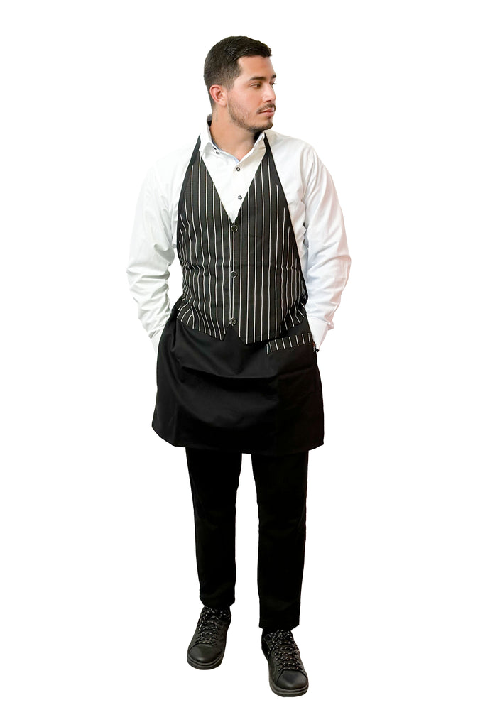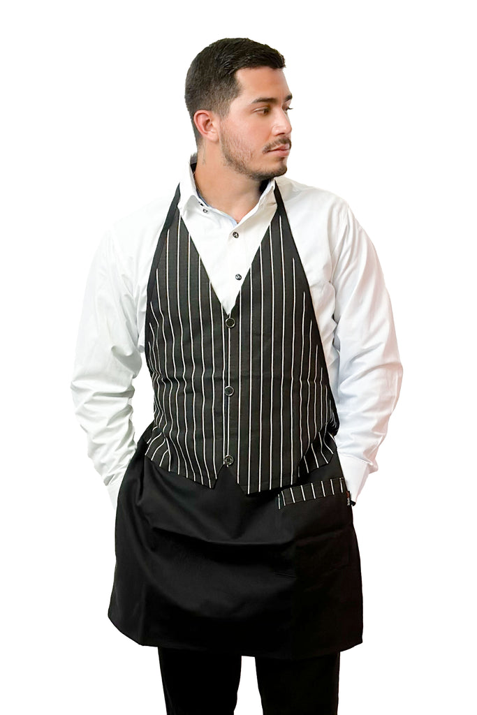 ¡Con el Mandil para chef Sevilla lucirás elegante en el restaurante o cocina! Cuenta con un diseño tipo chaleco formal a rayas y tiene un bolsillo del lado izquierdo, el cual te será útil para tener cualquier utensilio a la mano.