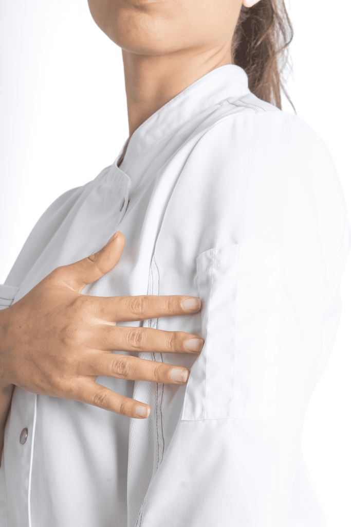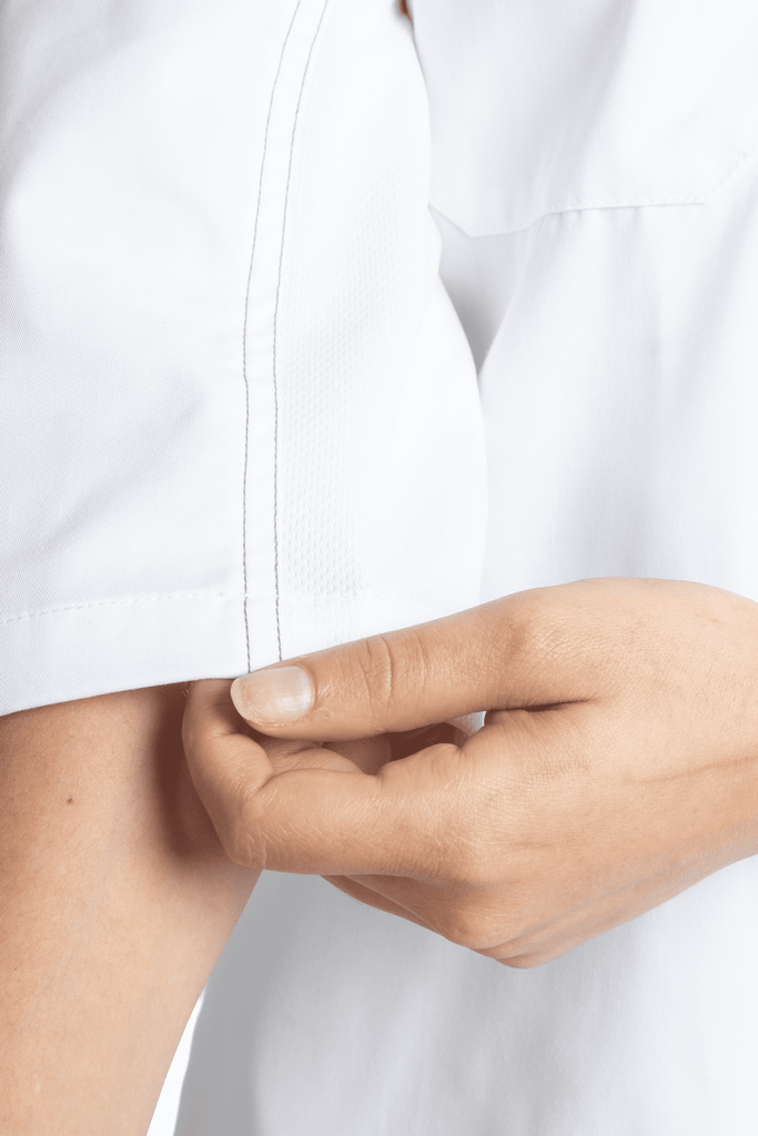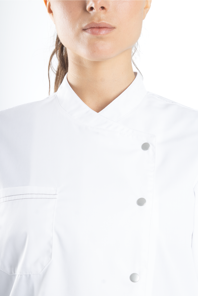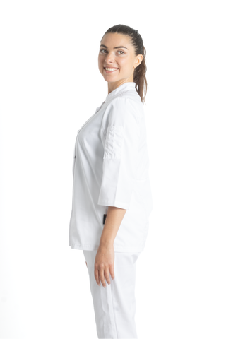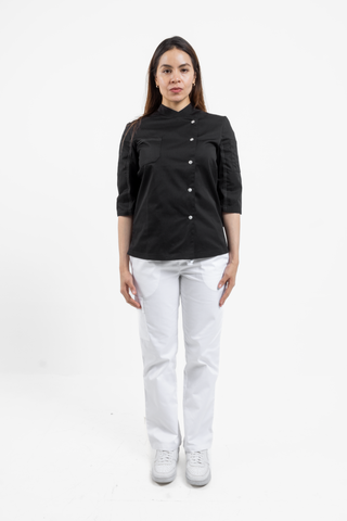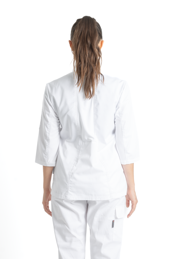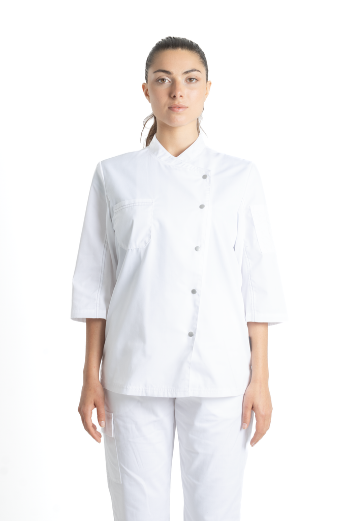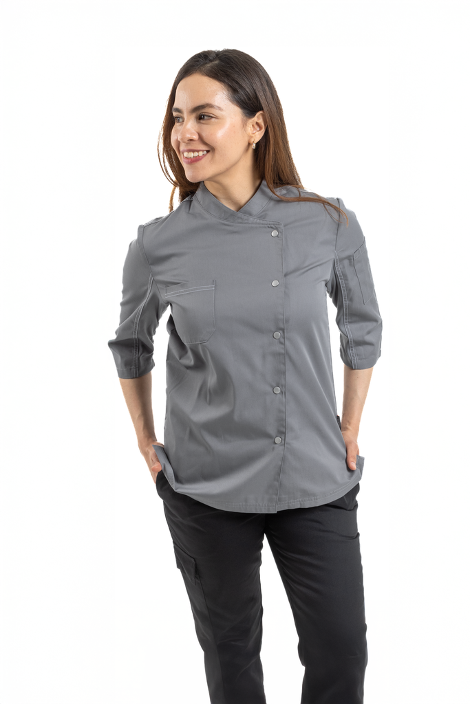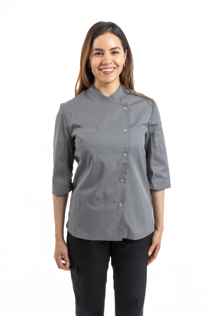 - Diseño premium con manga 3/4: Proporciona un equilibrio entre estilo y funcionalidad, ideal para el uso en cocina y servicio al cliente.