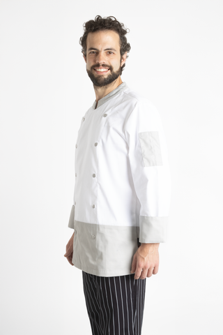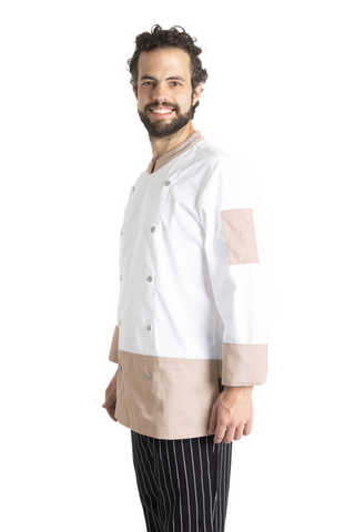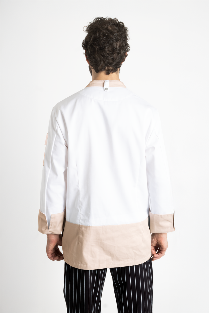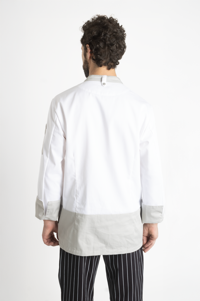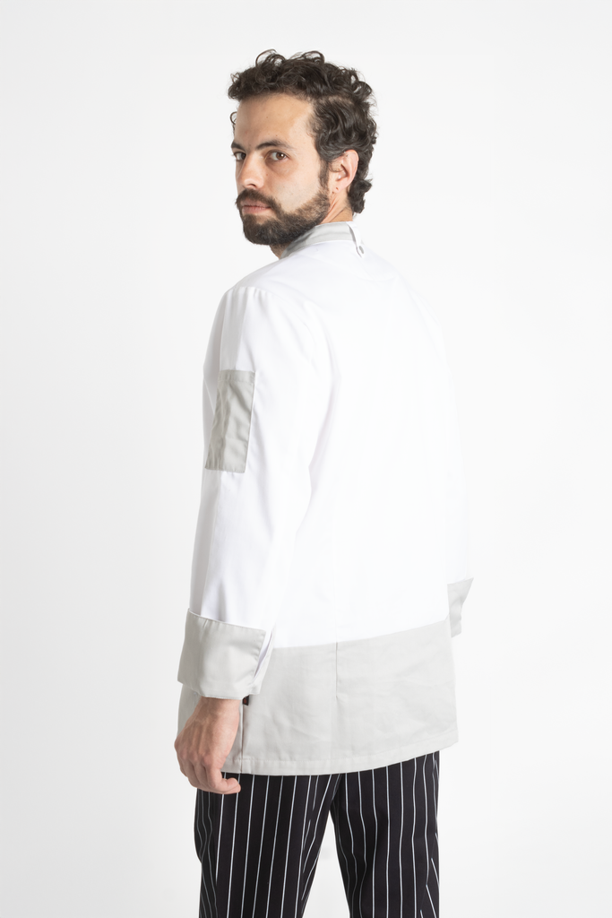 La Filipina para Chef Modelo Londres está diseñada para quienes buscan destacar con un outfit profesional que combine funcionalidad, estilo y personalidad. Con un diseño moderno que incluye vivos en color durazno o gris en el fondo, cuello, mangas y bolsas en los hombros, esta filipina aporta dinamismo y exclusividad a tu uniforme de chef completo. Ideal para restaurantes y hoteles premium, es perfecta para reflejar la calidad y personalidad de tu negocio.